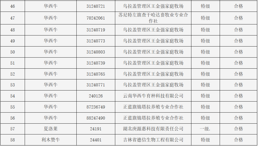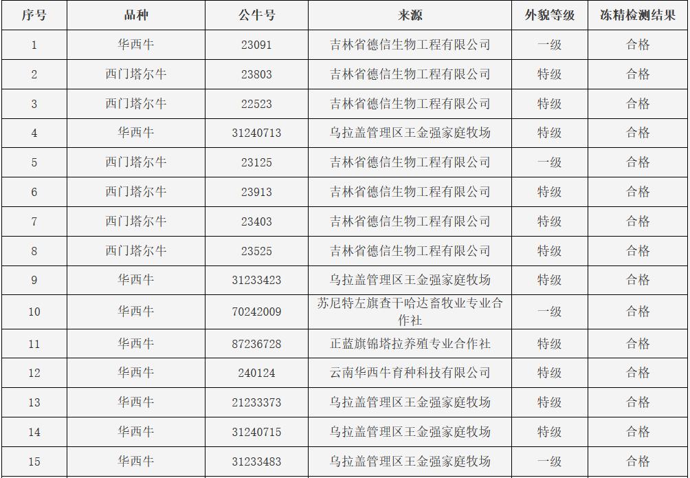 安徽欣浩翔生物工程有限公司合格種公牛名單