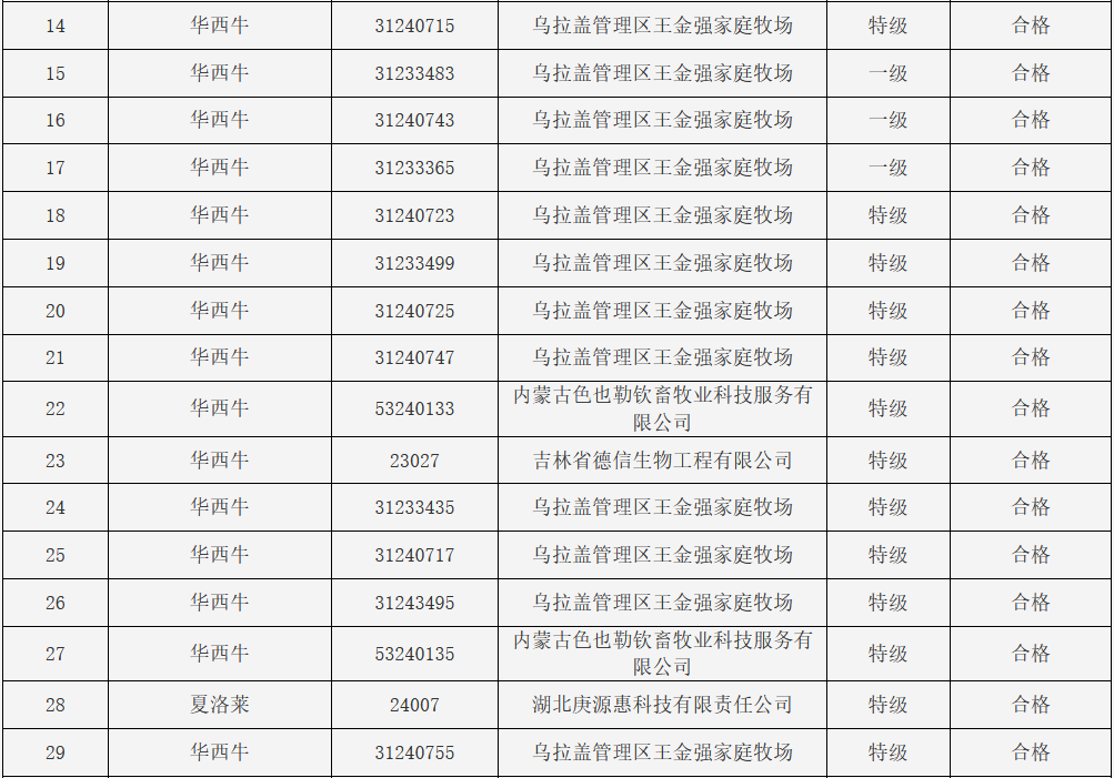 2. 安徽欣浩翔生物工程有限公司評定合格種公牛名單